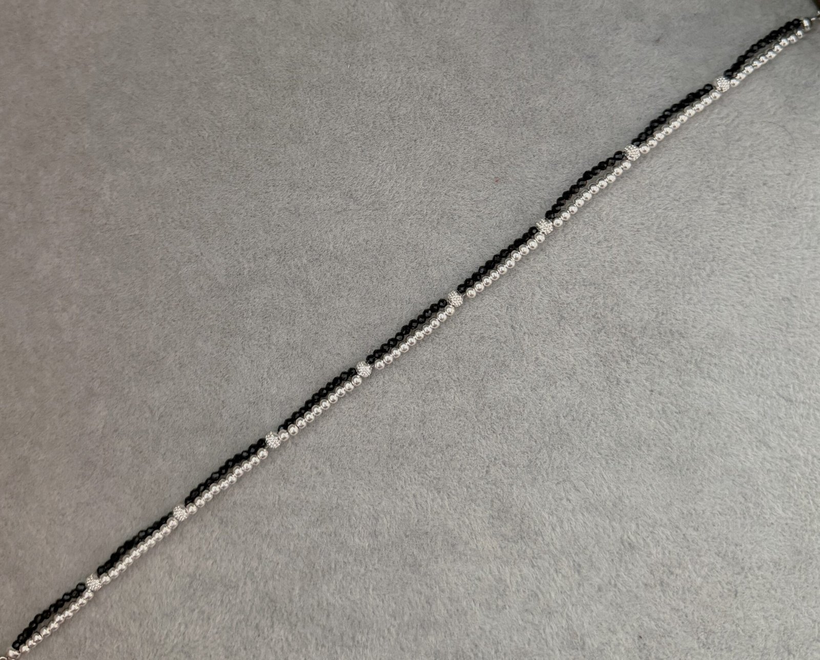 Be the first to review “Multi beads black silver anklet”