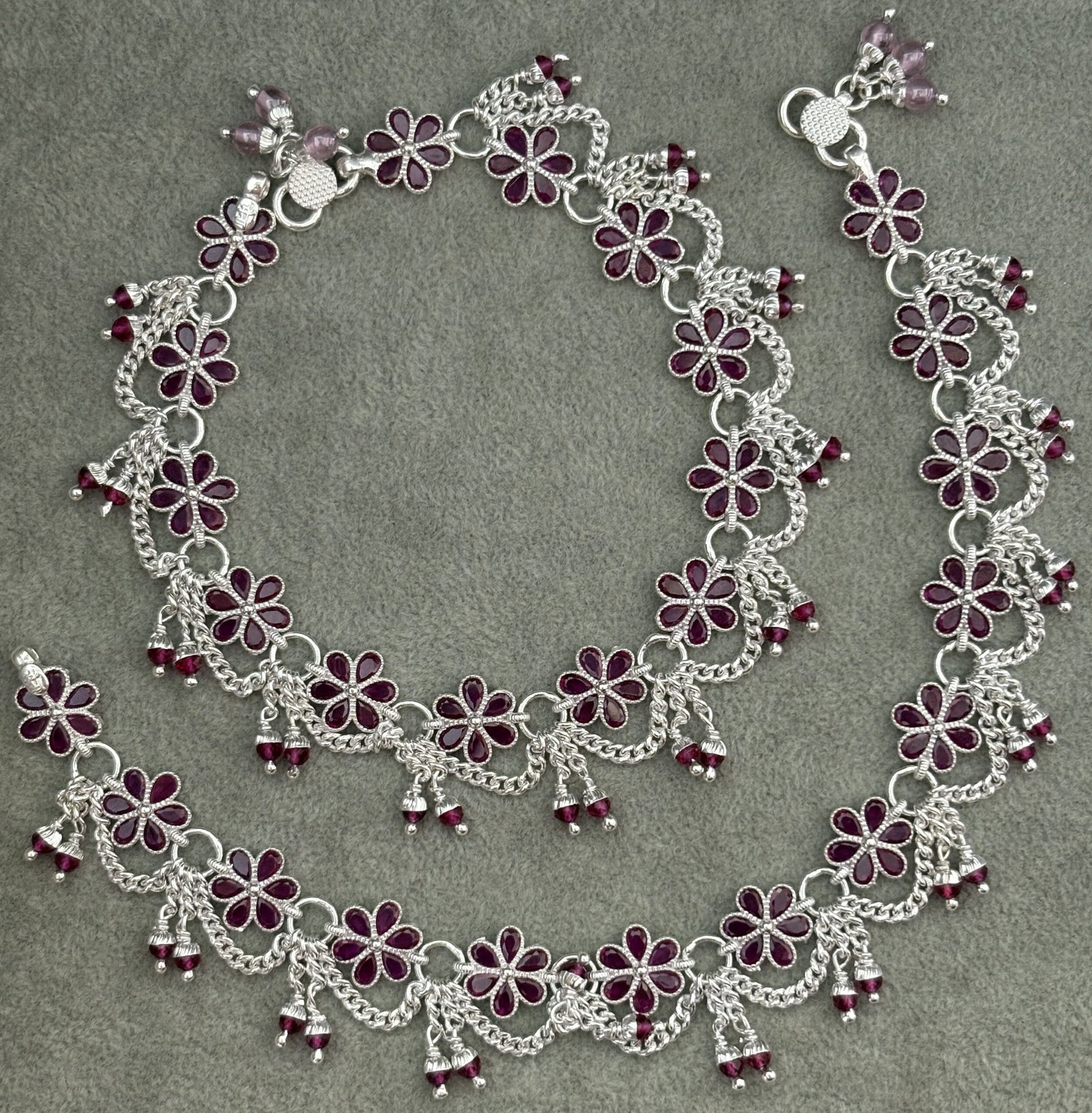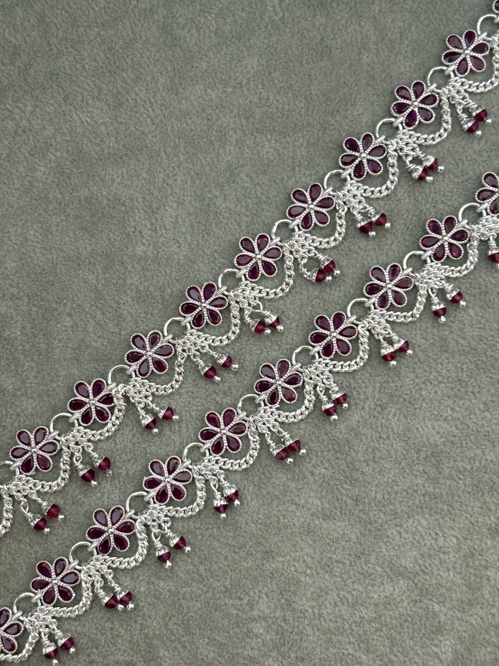 Be the first to review “Pink floral silver payal”